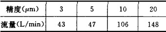 過濾精度對Y型過濾器所通過流量的影響是相當(dāng)大的,同一型號的過濾器當(dāng)其選用不同精度濾芯時,其通過流量也不同。由于受濾材結(jié)構(gòu)、濾芯制作工藝等因素的影響,精度與流量之間沒有固定的比例變化關(guān)系,但一般來說,過濾精度越高,其通過的流量越小。表1所示為某廠一標(biāo)準(zhǔn)型號產(chǎn)品,當(dāng)其精度變化時流量變化的數(shù)據(jù)。從表中可以看出精度變化對流量的影響是非常大的,這也是高精度Y型過濾器經(jīng)常發(fā)生流量不夠的主要原因。